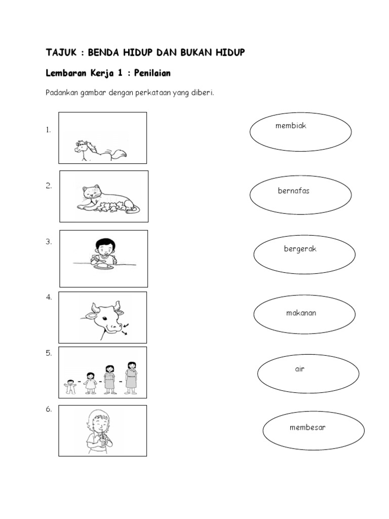 Lembaran Kerja Benda Hidup Dan Bukan Hidup Prasekolah