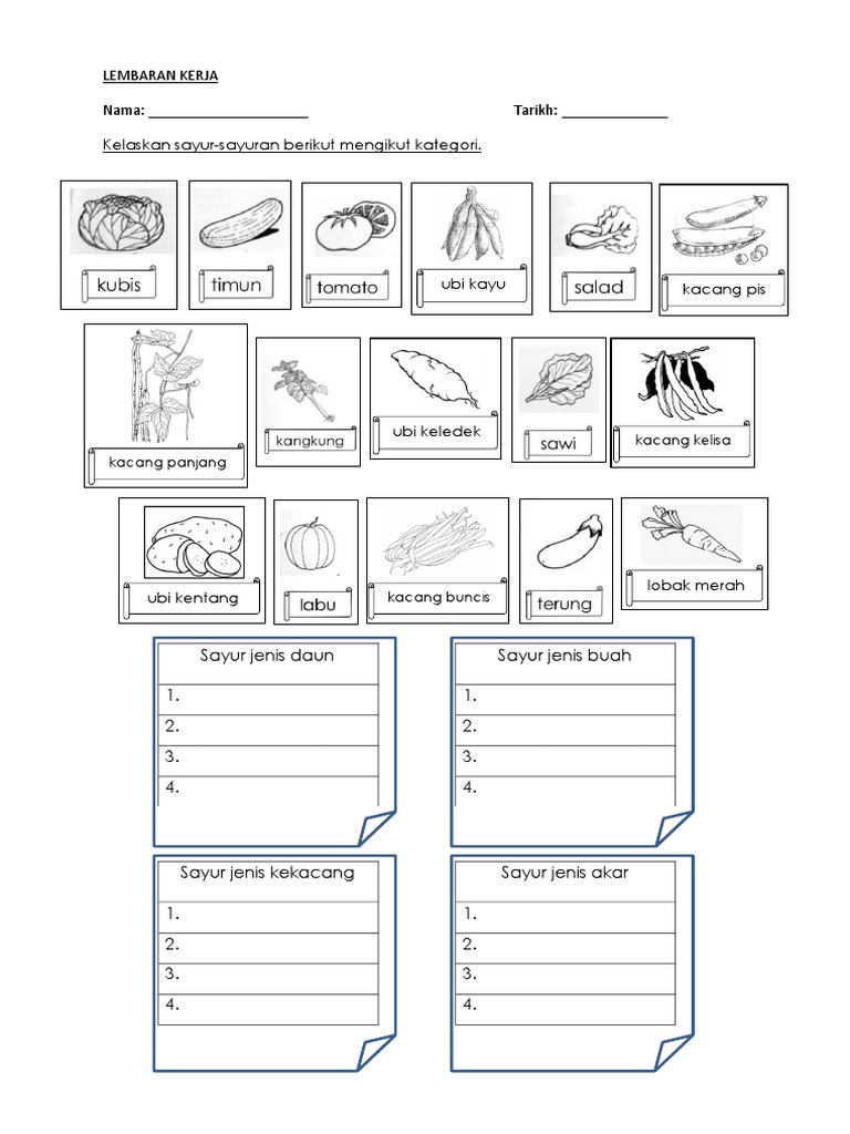 Bahasa Malaysia Prasekolah Latihan Sayur Sayuran Latihan Buku Pelajaran Belajar