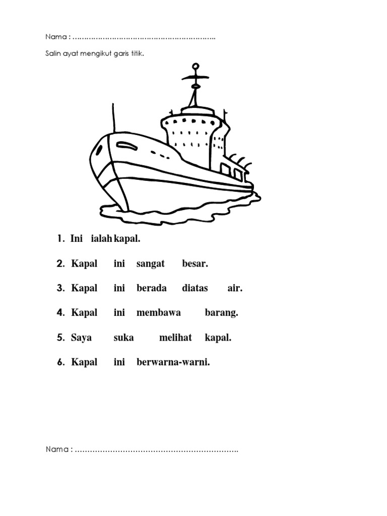 Lembaran Kerja Salin Perkataan Kenderaan Air