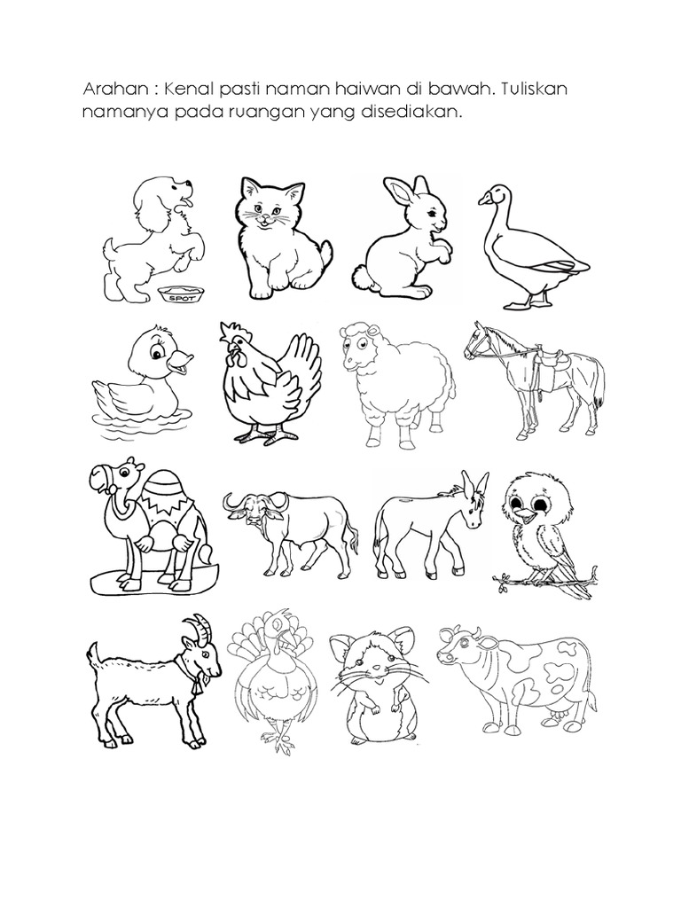 Bahasa Malaysia Prasekolah Latihan Haiwan Jinak Preschool Worksheets Alphabet Worksheets Preschool Free Kindergarten Worksheets