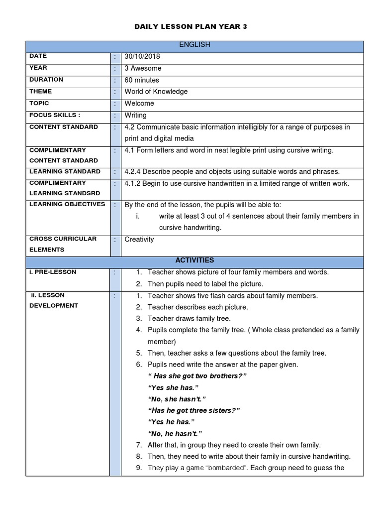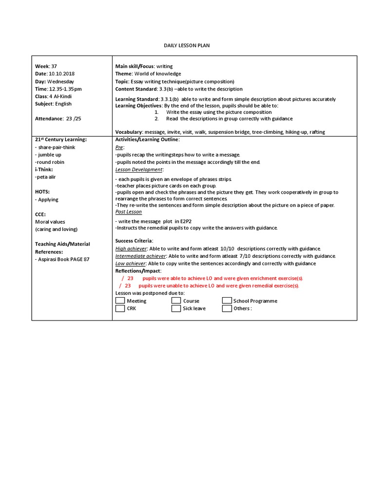 Daily Lesson Plan Yr 4 Wednesday Copy Lesson Plan Pedagogy