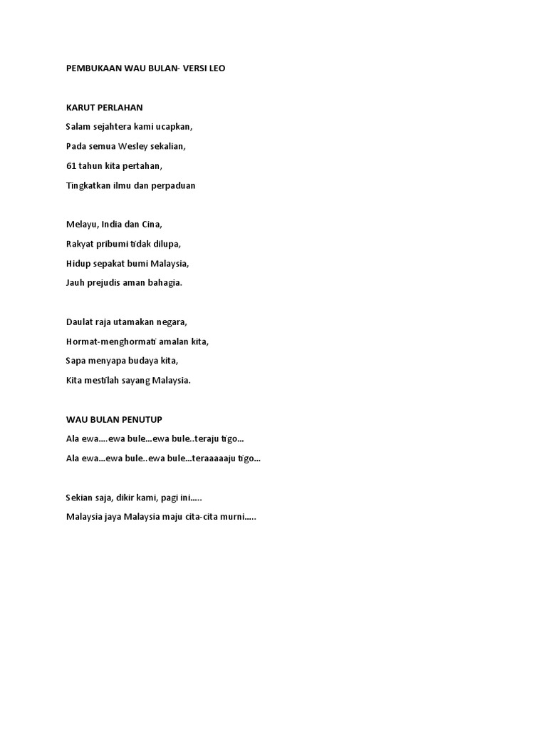 Lirik Lagu Wau Bulan Tahun 1