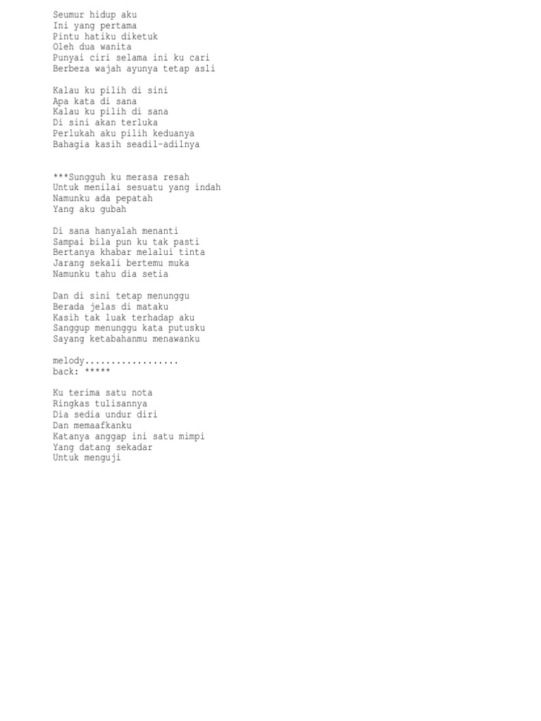 Not Angka Lagu Disana Menanti Disini Menunggu Ukays Sungguh Ku Merasa Resah Dunia Lirik Not Lagu