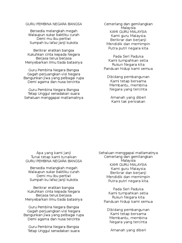 Lirik Guru Pembina Negara Bangsa