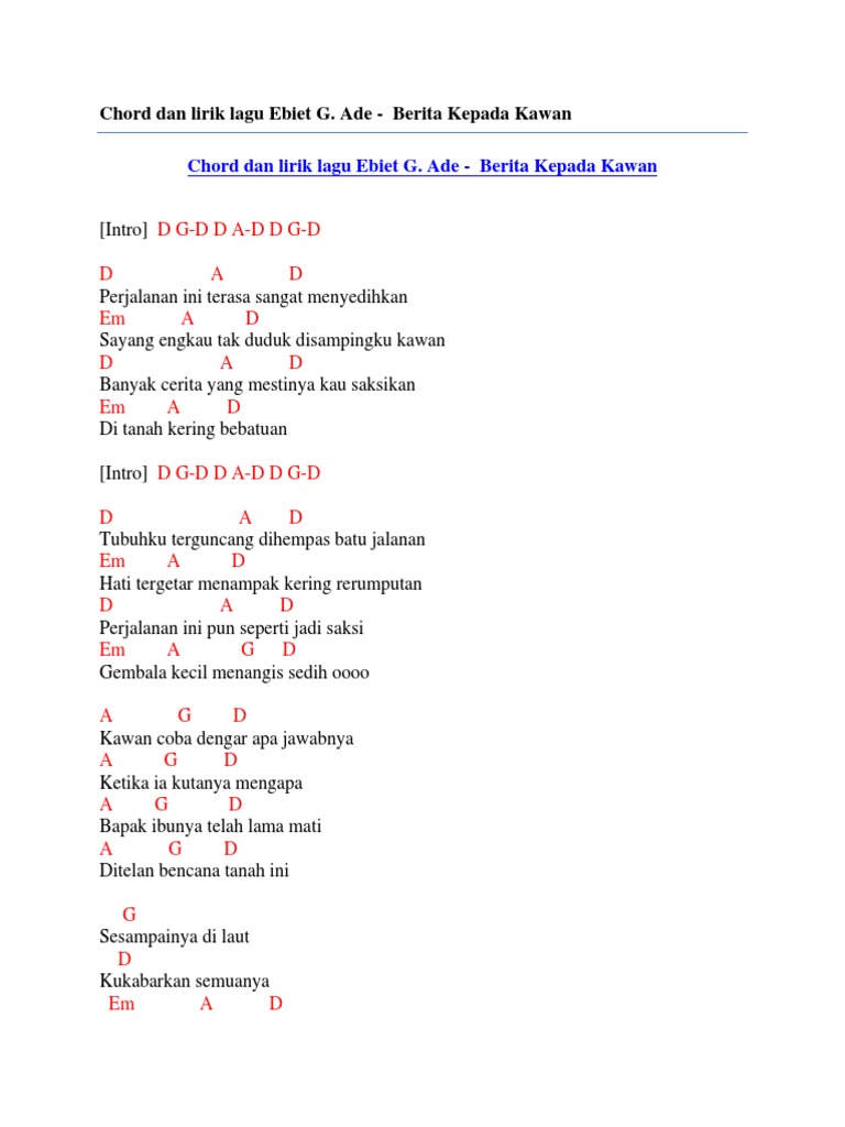 Chord Dan Lirik Lagu Ebiet G Ade Berita Kepada Kawan By Chord Zila Issuu