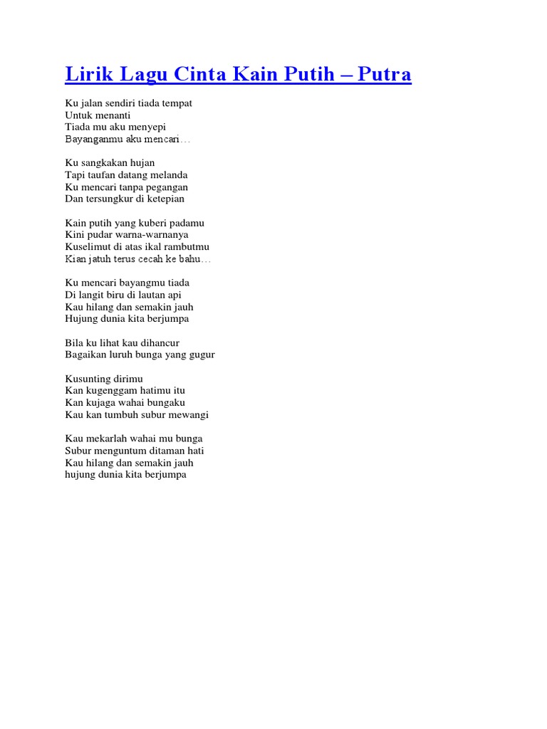 Lirik Lagu Cinta Kain Putih Docx