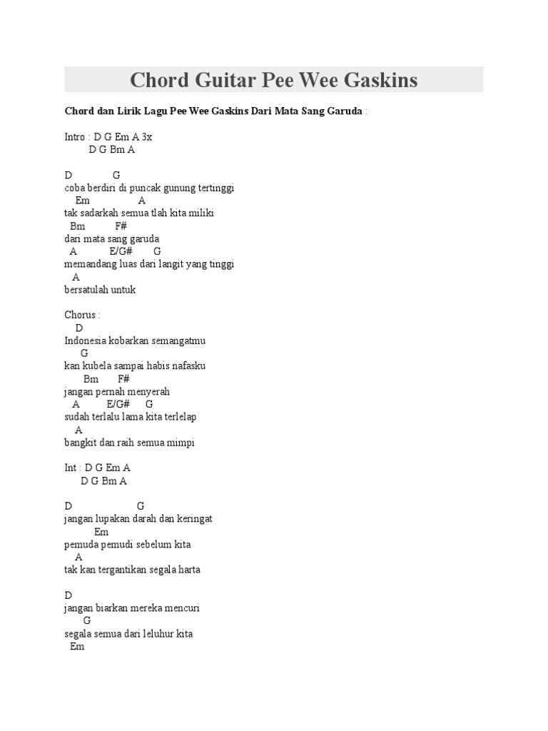 Pee We Gaskin Docx Chord Dan Lirik Lagu Pee Wee Gaskins Dari Mata Sang Garuda Intro D G Em A 3x D G Bm A D G Coba Berdiri Di Puncak Gunung Tertinggi Course Hero