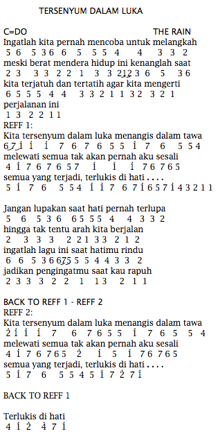 Not Angka Dan Lirik Lagu The Rain Tersenyum Dalam Luka Dunia Lirik Not Lagu