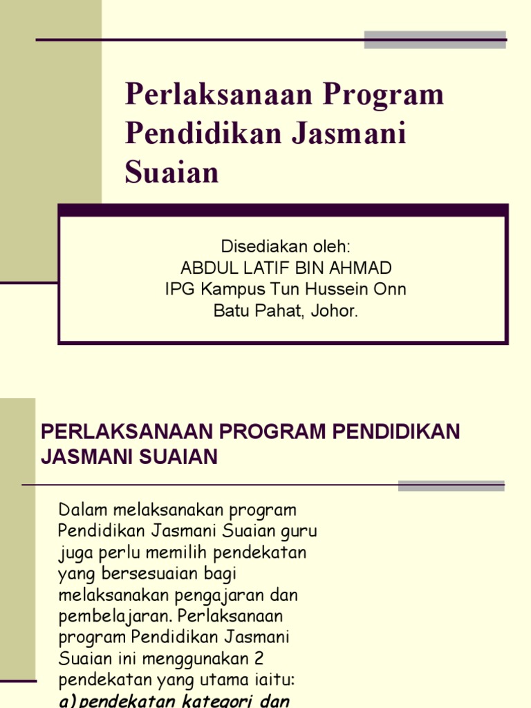 Konsep Pendidikan Jasmani Suaian Disediakan Oleh Abdul Latif Bin Ahmad Ipg Kampus Tun Hussein Onn Batu Pahat Johor
