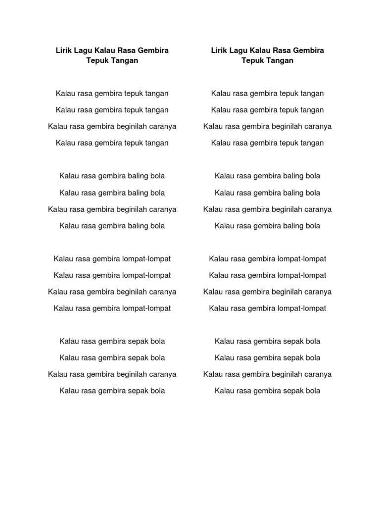 Lirik Lagu Kalau Rasa Gembira Tepuk Tangan