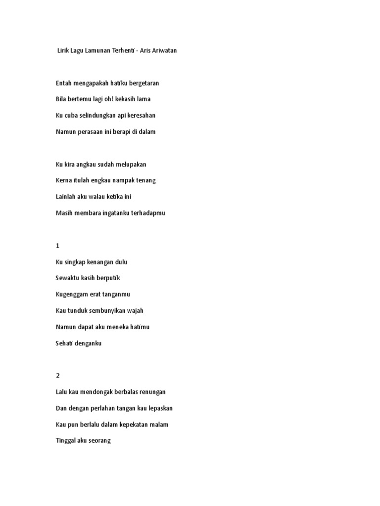 Lyrics Lirik Lagu Lamunan Terhenti Aris Ariwatan