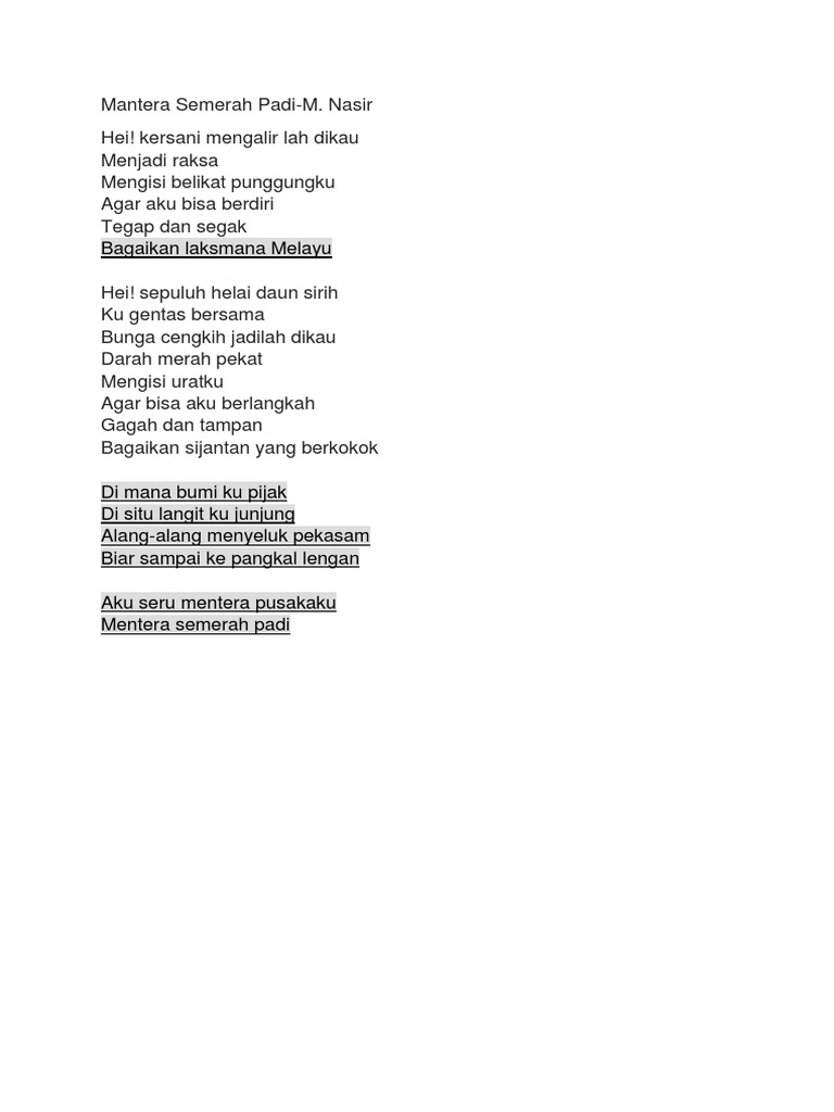 Mantera Semerah Padi Lirik Docx