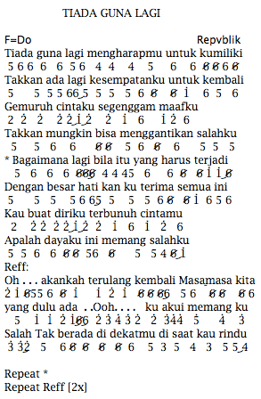 Not Angka Lagu Repvblik Tiada Guna Lagi Dunia Lirik Not Lagu