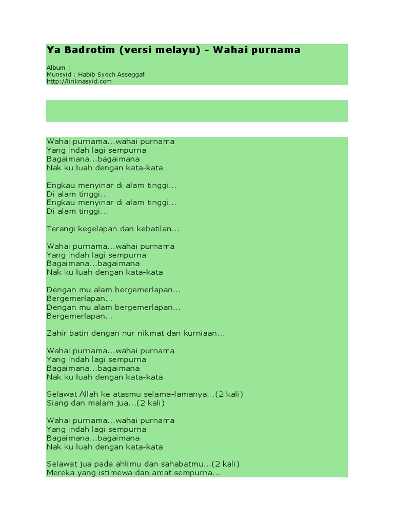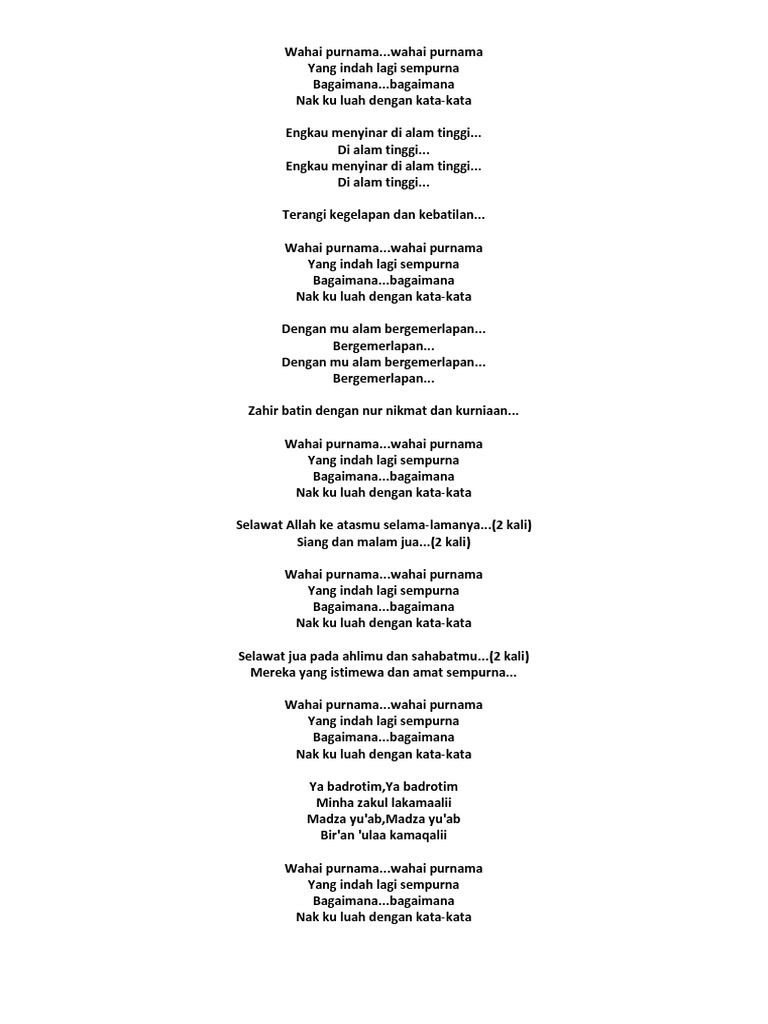 Lirik Nasyid Ya Badrotim Versi Melayu Wahai Purnama