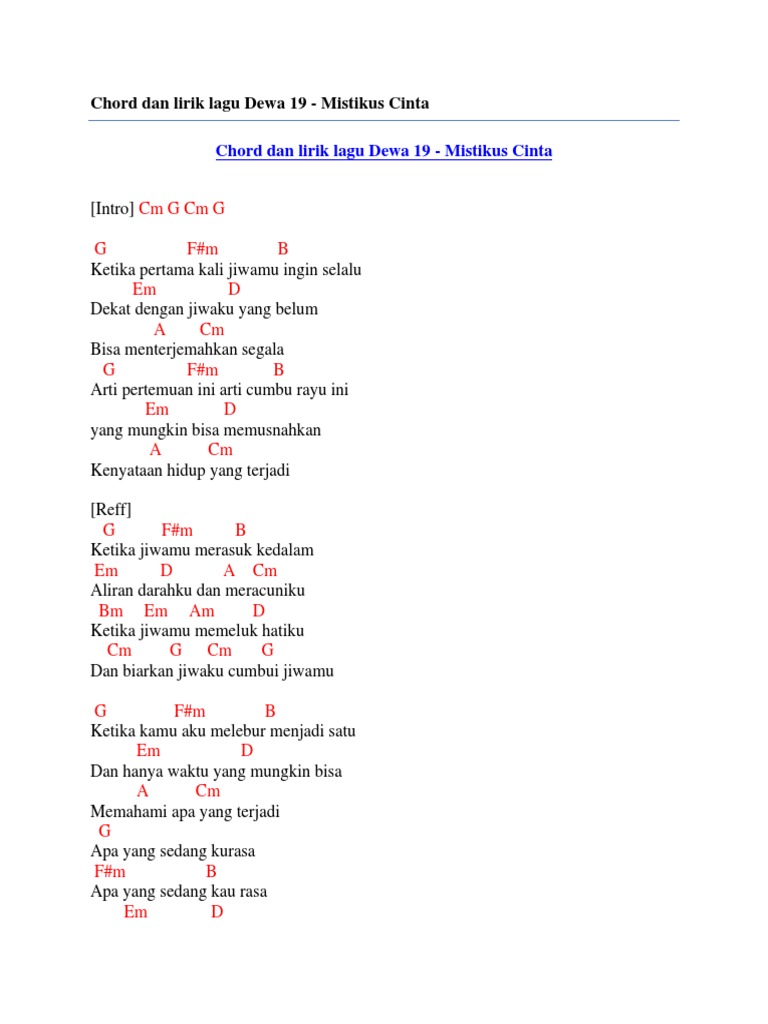 Chord Dan Lirik Lagu Dewa 19 Mistikus Cinta