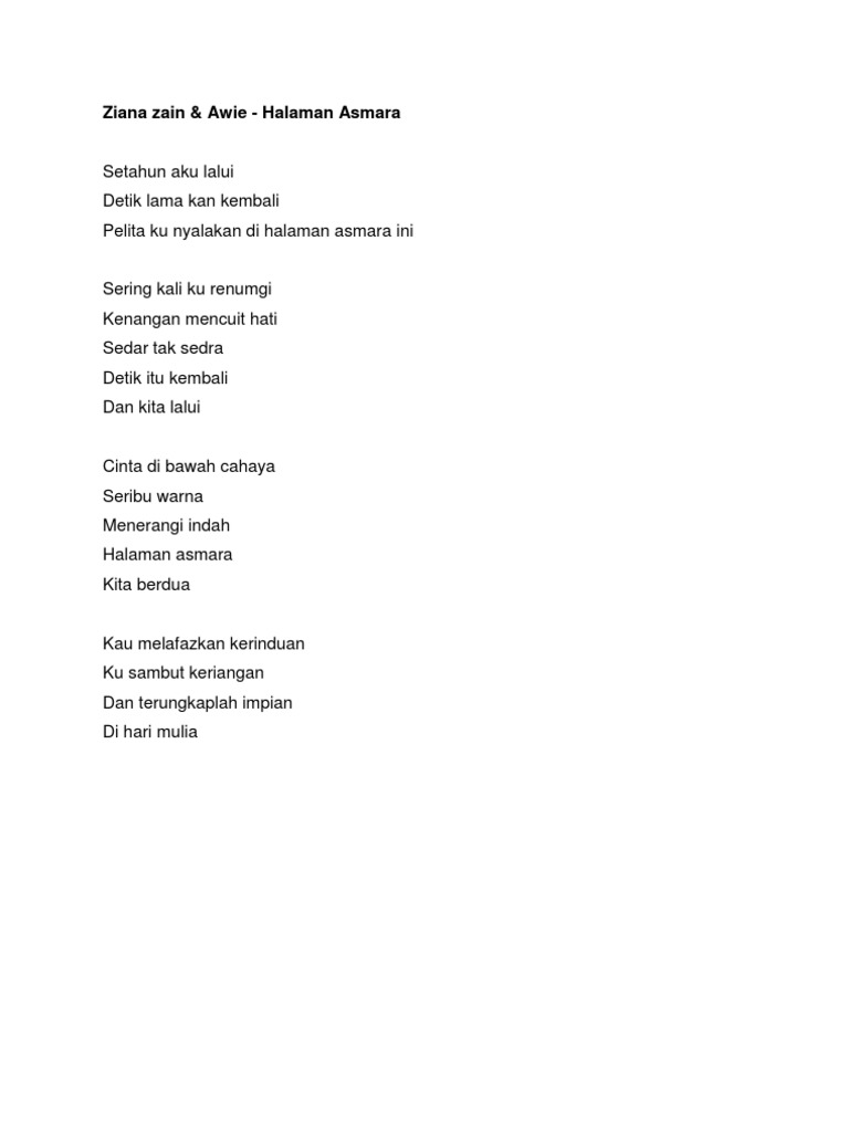 The Peak Of Love Puncak Kasih Lyrics Ziana Zain Zain Menyatakan