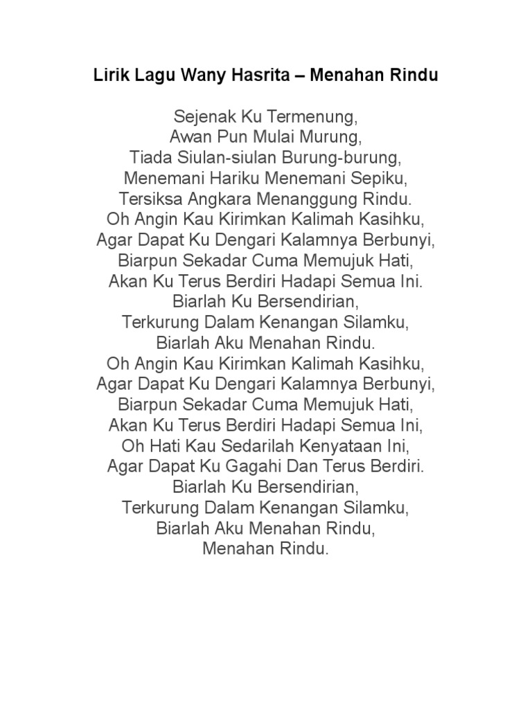 Lirik Lagu Menahan Rindu Wany Hasrita Youtube