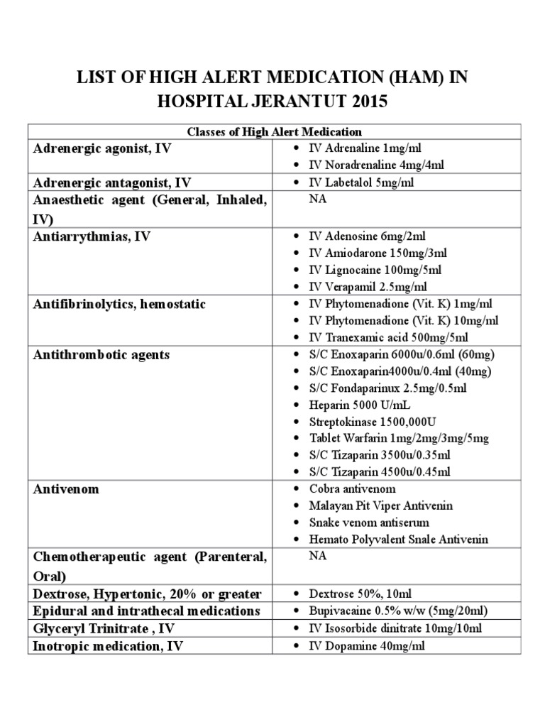List Of High Alert Medication 2015 Drugs Pharmacology